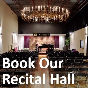 In general, the recital hall is available on Friday and Saturday evenings from 6–9 PM, and on Sunday from 5–8 PM. Extended hour available for extra cost. Weekday bookings are available upon special request and subject to availability