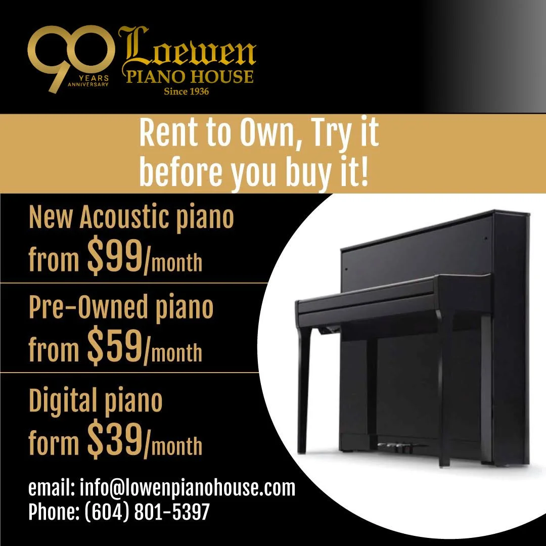 Loewen Piano House has offered a special 0% financing for up to 48 months to those who are in need. Digital Piano starts as low as $39/month, New Vertical starts as low as $99/month!